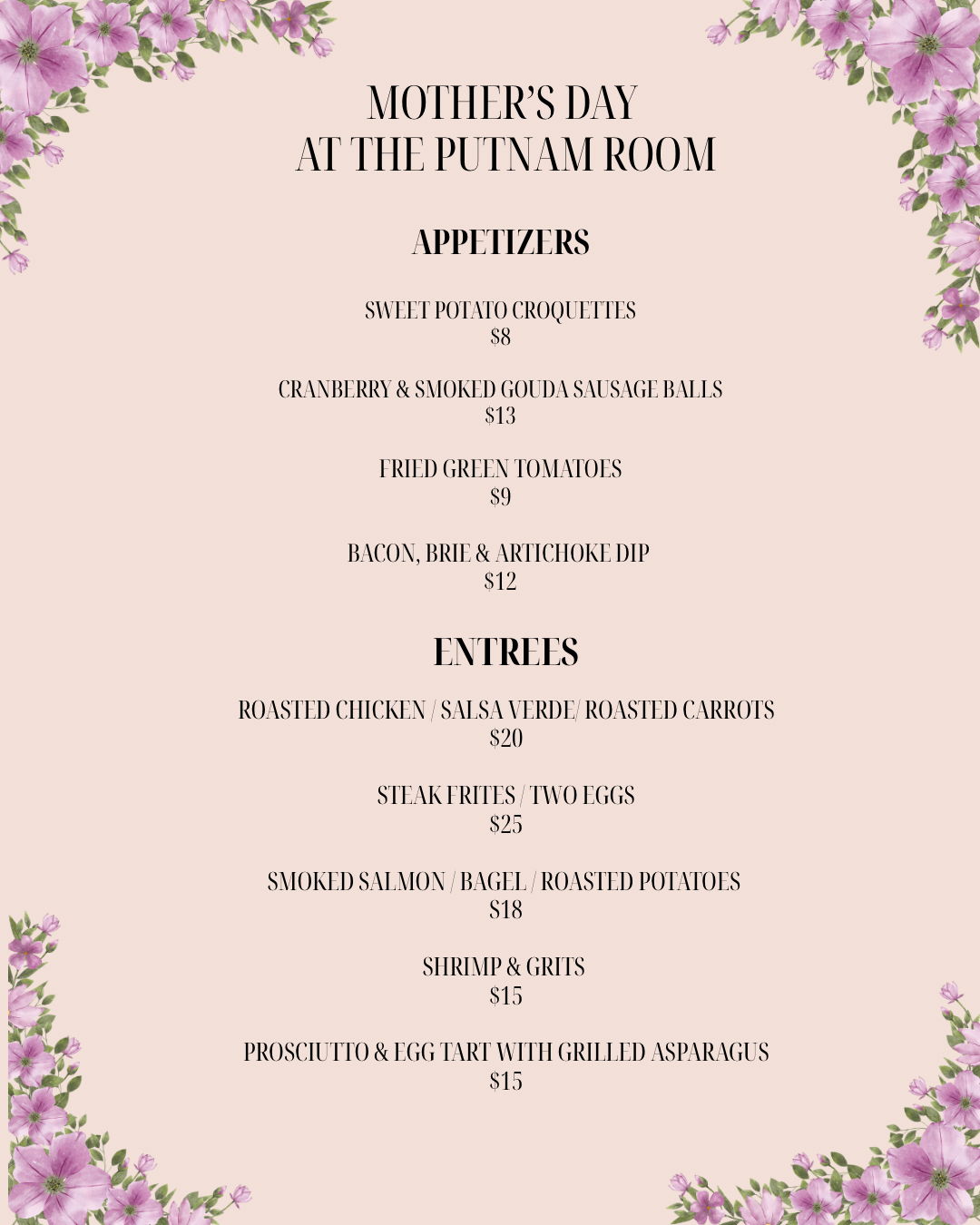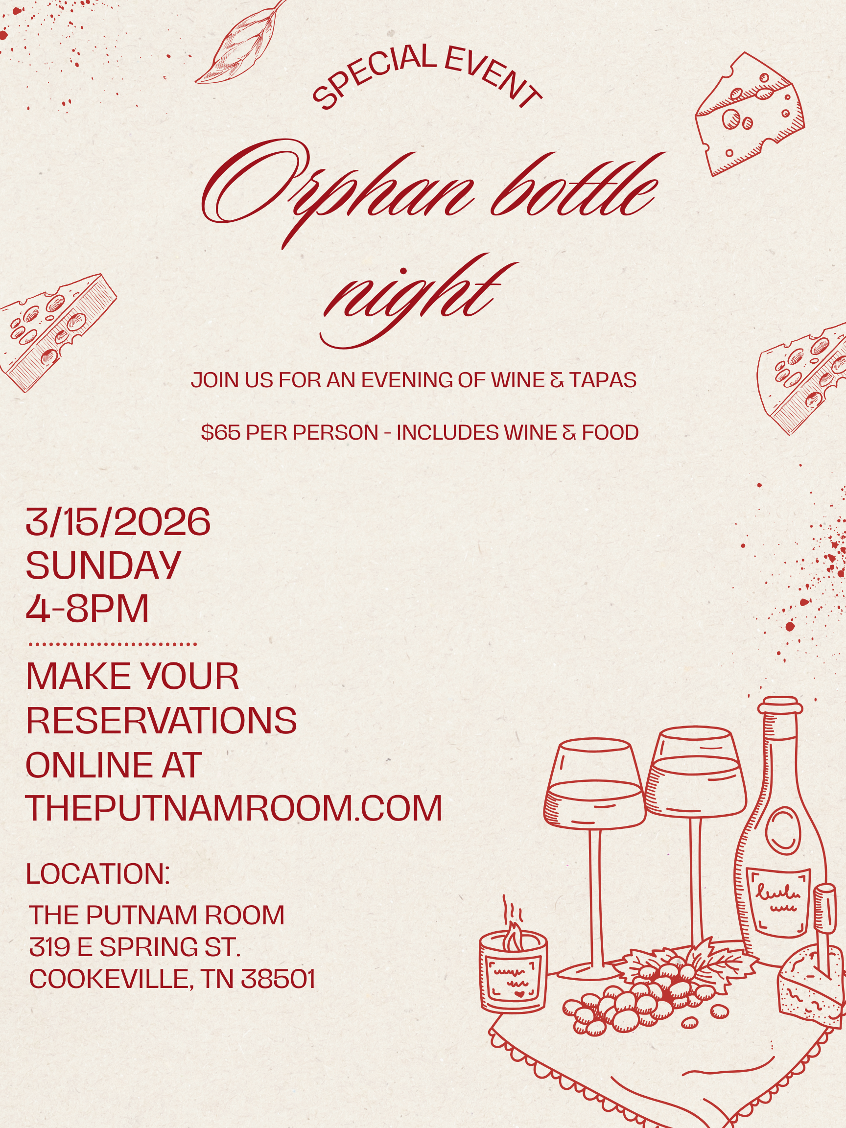The Putnam Room offers a dining experience for everyone. From date night to drinks with friends! Come celebrate with us for your special occasion. Open Tuesday - Friday from 11 am to 9 pm, Saturday 4-10 pm. Happy hour from 3-5pm throughout the week & our new late night happy hour on Saturdays from 8-10pm!